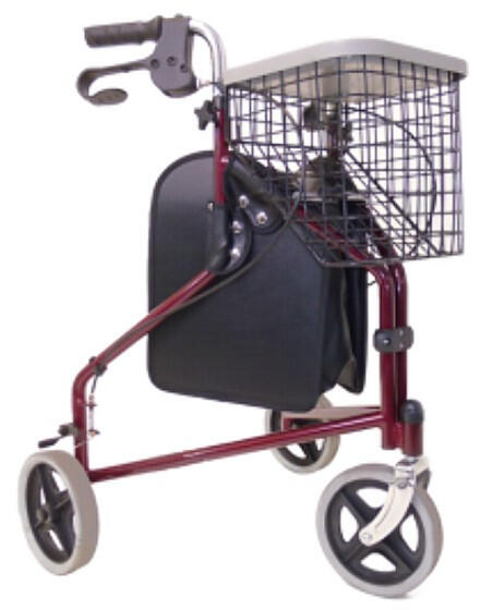 Rollátor 3 kerekű DRIVE vörös táskával, kosárral és tálcával